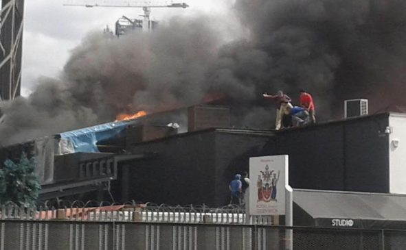 This is the moment a family was dramatically plucked from a rooftop to escape a “biblical” fire which tore through London’s biggest nightclub.A man in his 20s is fighting for life in hospital following the blaze at Club 338 near the O2 in Greenwich which broke out just before noon yesterday.