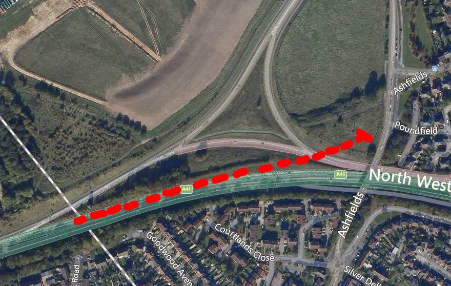 The car careered off the A41 Road at the bend, and eneded up in overgrown verge after losing control on the A41 Dual Carriageway travelling from Hunton Bridge Roundabout, towards leavesden at 11:50am.